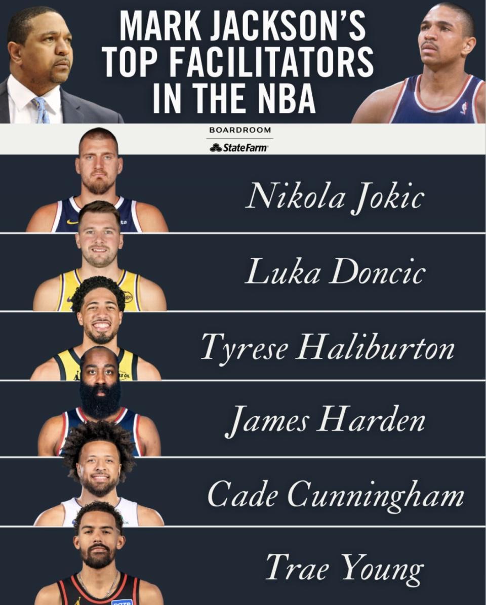 最近Boardroom× State Farm发布了“马克·杰克逊评选的NBA顶级组织者”榜单。约基奇、东契奇、哈登等球员入选,名单里还放进了哈利伯顿、特雷·杨、康宁汉姆。库里、詹姆斯这些同样以组织带动进攻闻名的球员没在榜单里。中锋和后场核心被放在同一张榜单里排序,顺序一出来,争议自然就跟...