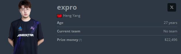 expro现年27岁本名杨桁,此前效力于IG、LVG、RA等队,目前并无战队,在CNCS圈内颇有名气被人们亲切地称为“杨队”。