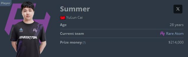 Summer现年28岁本名蔡誉伦(别称cy1),此前效力于FLASH、天禄、VG,有5次Major经历,是CNCS历史上标志性人物。