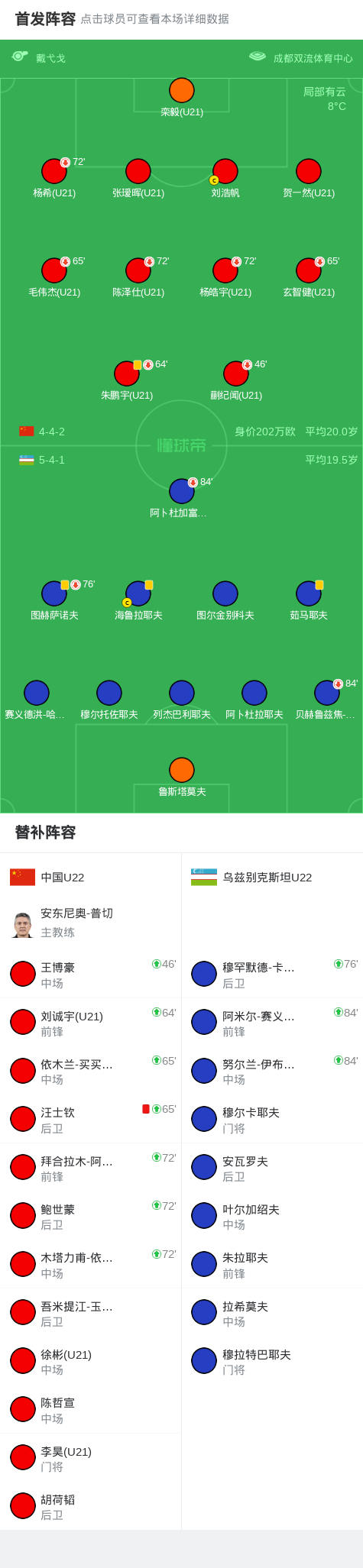 北京时间11月18日中国之队熊猫杯国际足球邀请赛 成都邀请赛 第3轮,中国U22对阵乌兹别克斯坦U22。最终比分中国U22 0-0 乌兹别克斯坦U22。